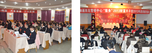 瑞雪兆丰年,新年新气象,2013年1月18日下午,一刻通西北营销中心“服务2013”财富共享暨2012年度表彰大会在古都西安隆重开幕,郑州邦泰生物科技有限公司董事、总经理杨正建、副总经理刘文龙,一刻通课题组组长常林教授,一刻通发明人王洪昌教授,一刻通西北区域市场总经理杨忠营、副总经理王清华以及一刻通西北营销中心各部门工作人员和各地员工共约100人参加了此次表彰大会。会议回顾了2012年度一刻通在西北区域走过的光辉历程,总结了一刻通人一路走来的酸甜苦辣及取得的成果,同时还展望了2013年一刻通在西北区域发展的目标。